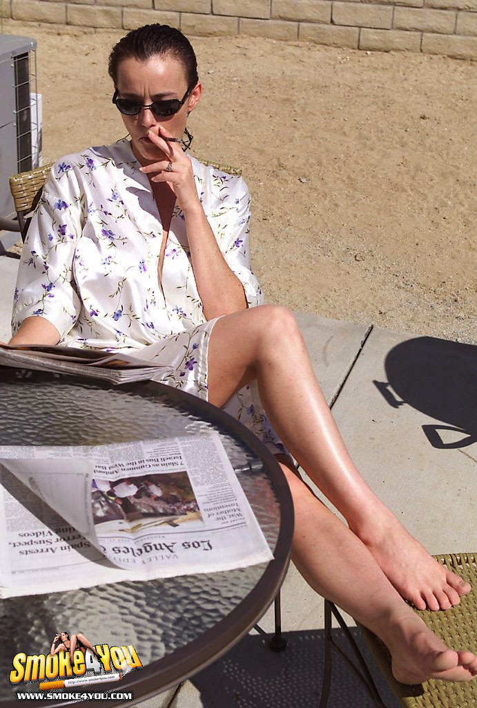Sexy MILF Saffy masturbates in stockings looking at her pictures