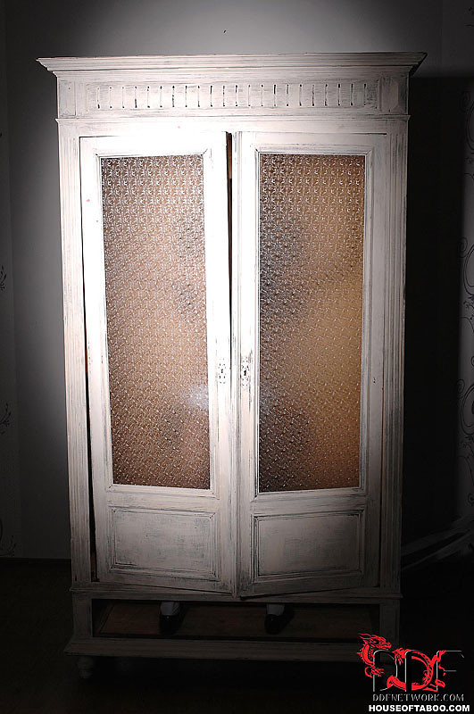 Blonde babe Gina bound in cabinet