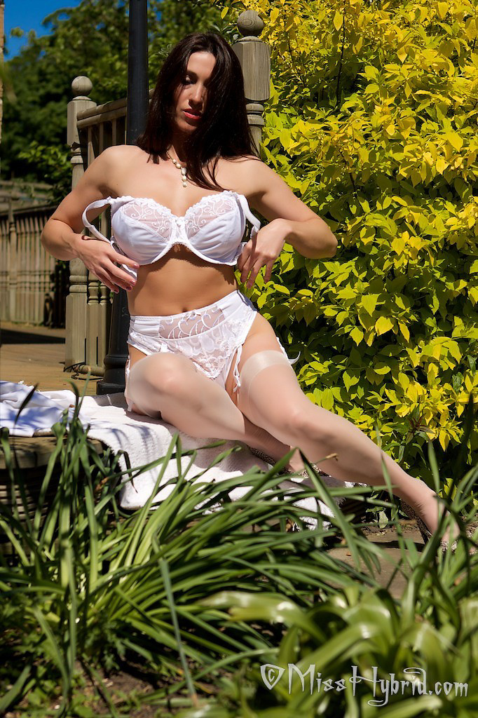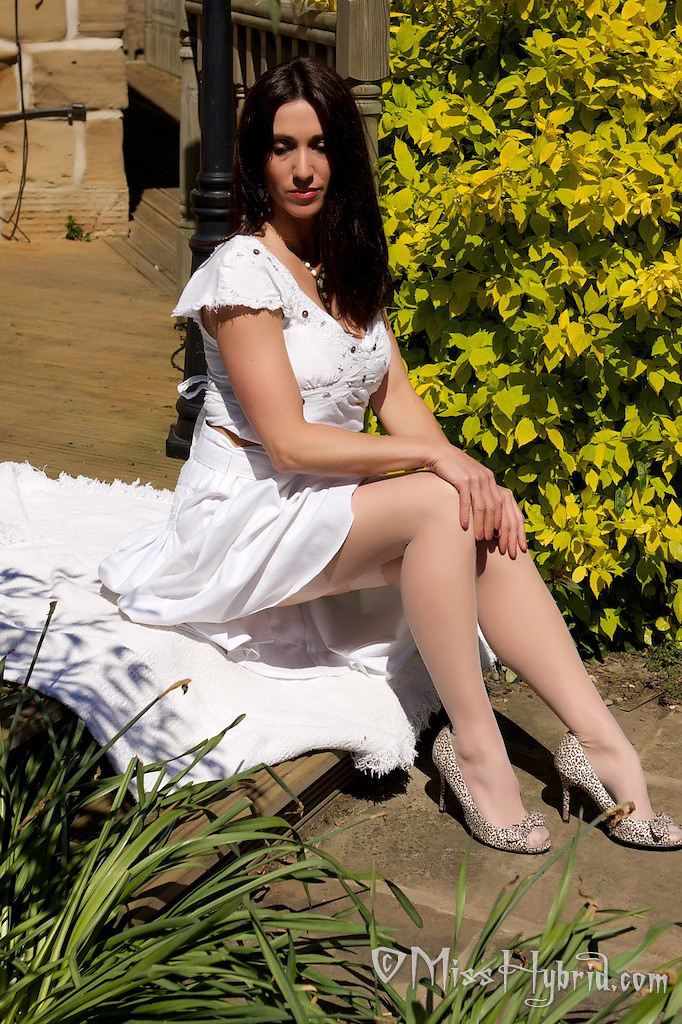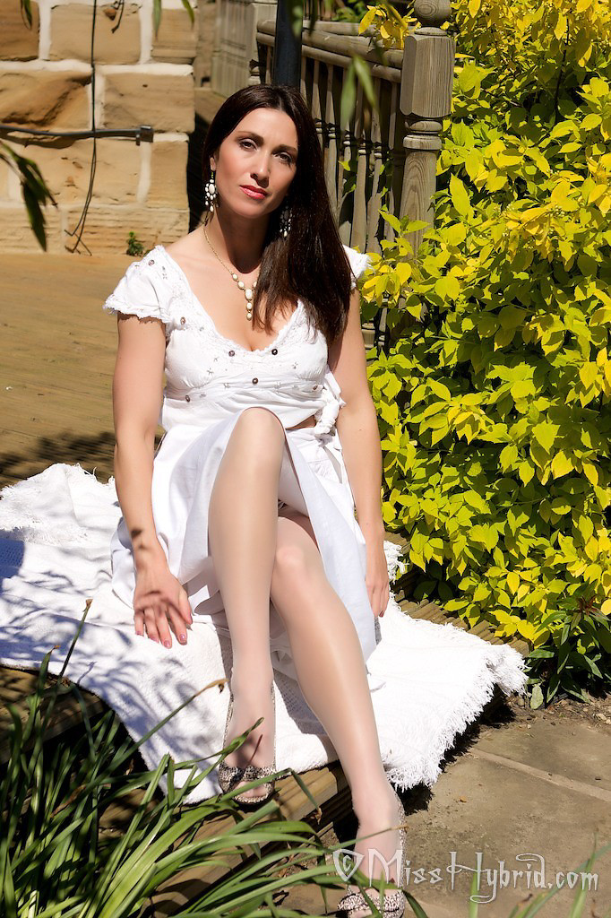 Leggy MILF Astrid Adams wanks in gloves and Wolford pantyhose