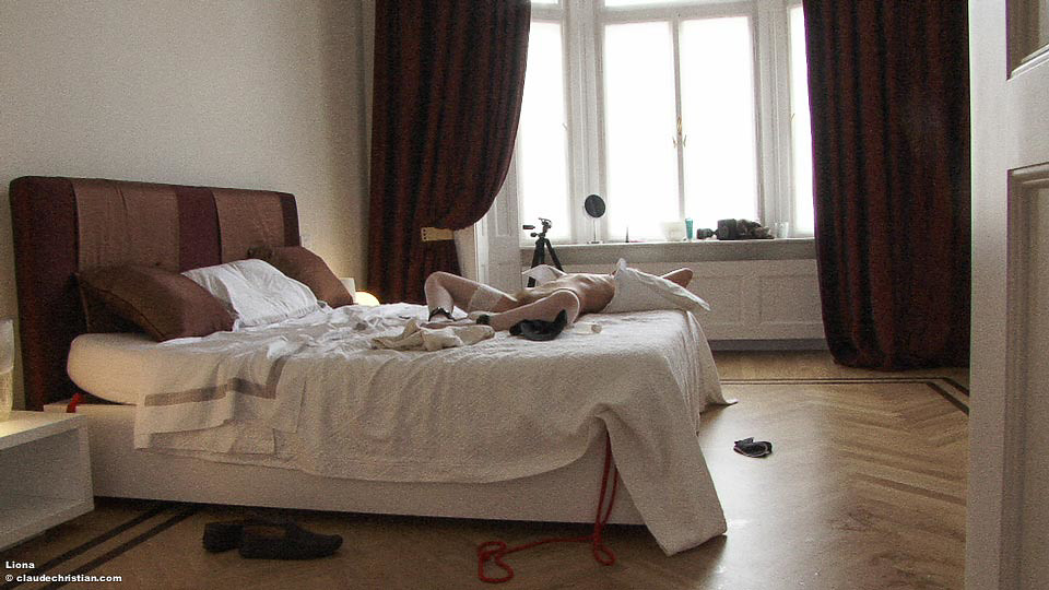 Sexy teen shows her pretty soles and sexy toes in black nylons