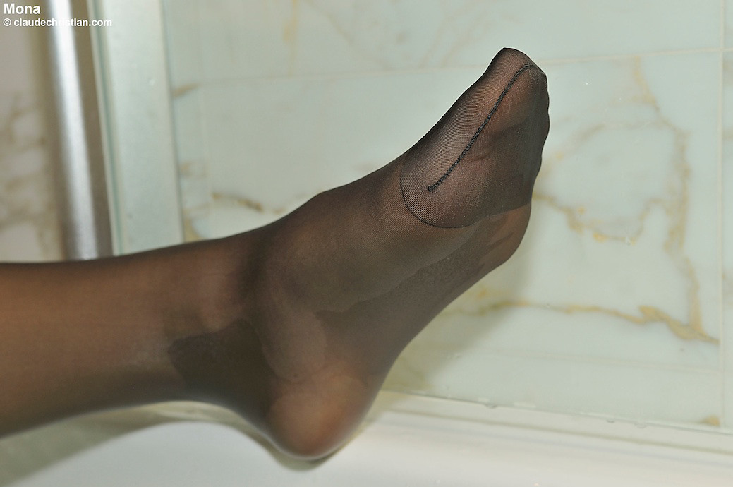 Mona Lee in pantyhose gets wet