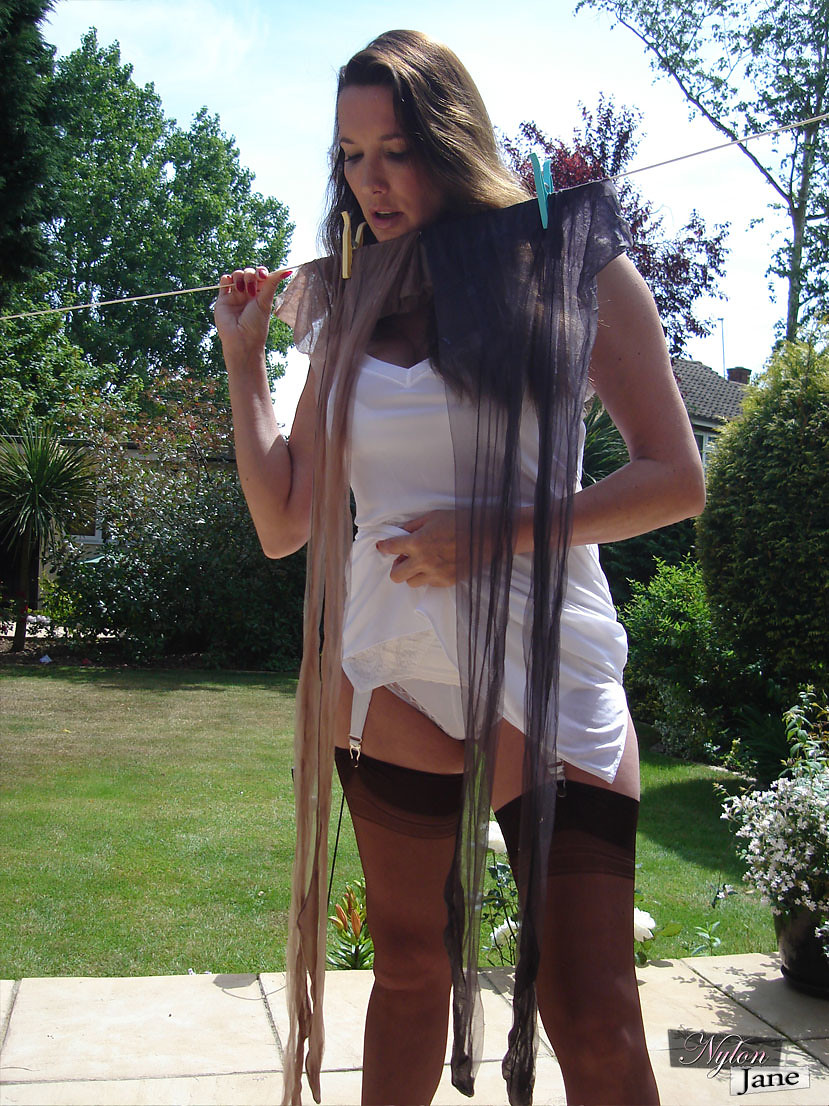Stunning little blonde bombshell wearing knee high socks and cheeky panties
