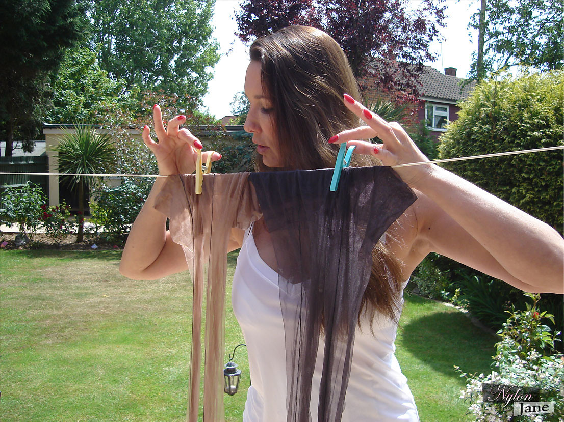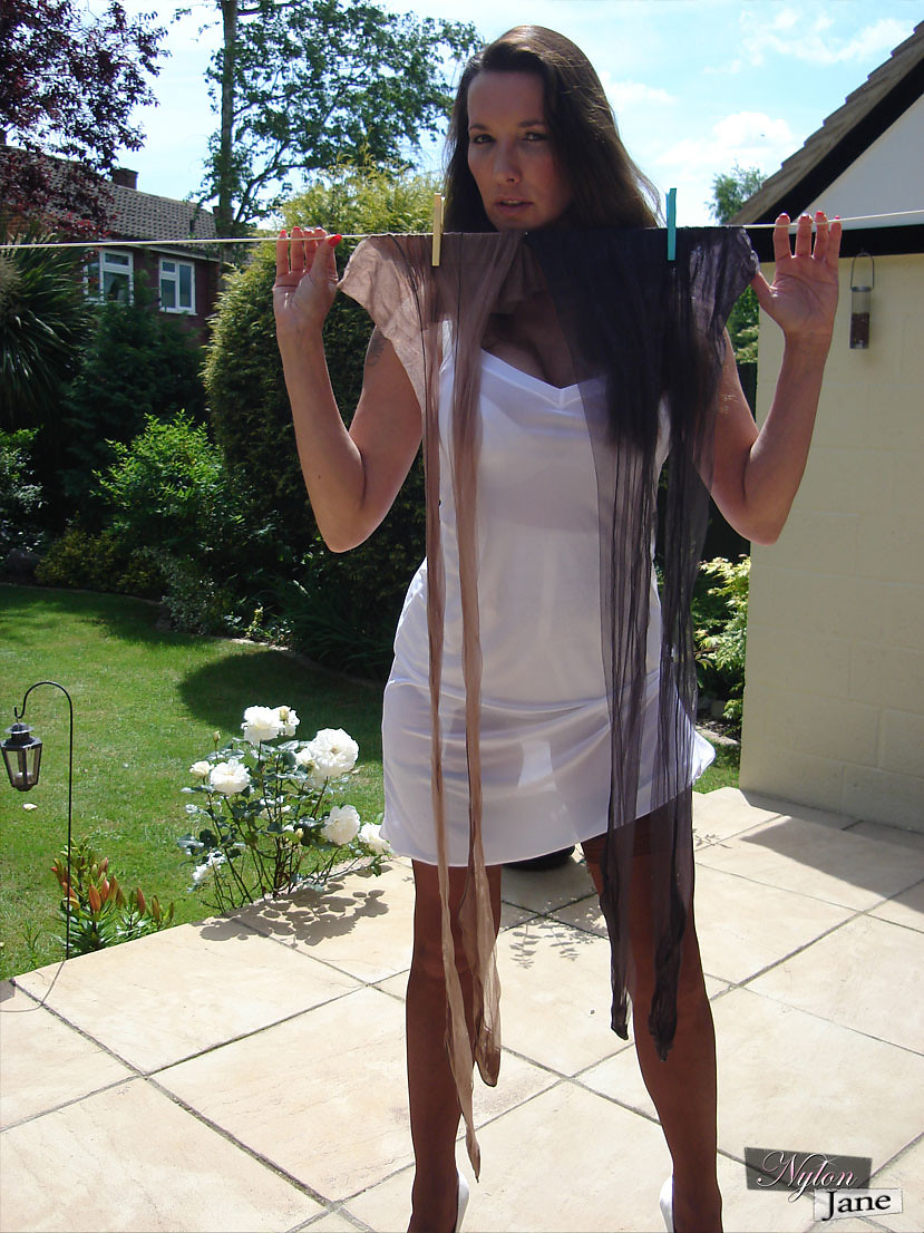 Lucimay slowly peels herself out of her white negligee and plays with her hard cock.