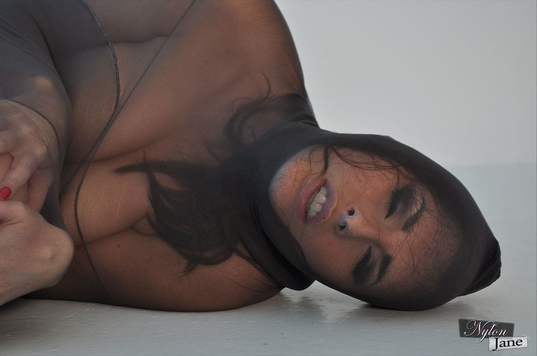 Paige Turnah is incased in this full body nylon suit and looking amazing