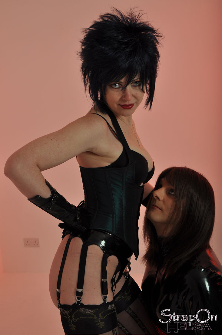 This tgirl tart loves to worship at the feet of Strapon Helga