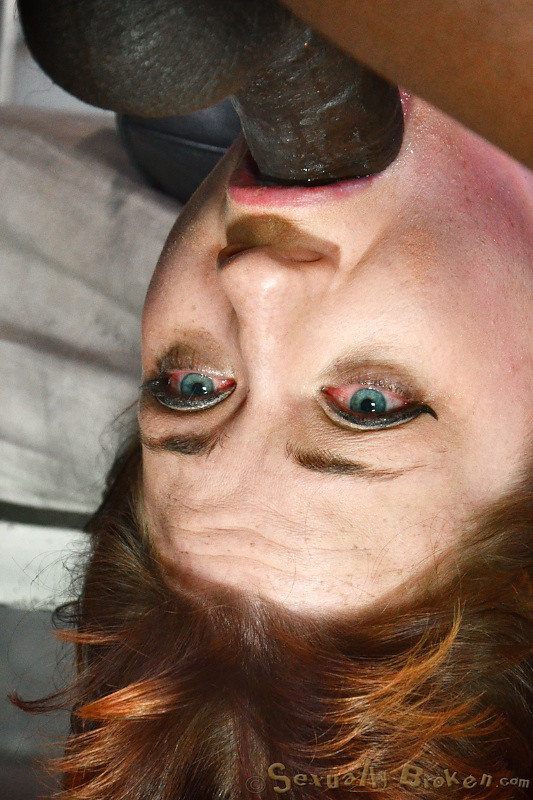 Sexy ginger in a leather straightjacket and stuffed full of cock