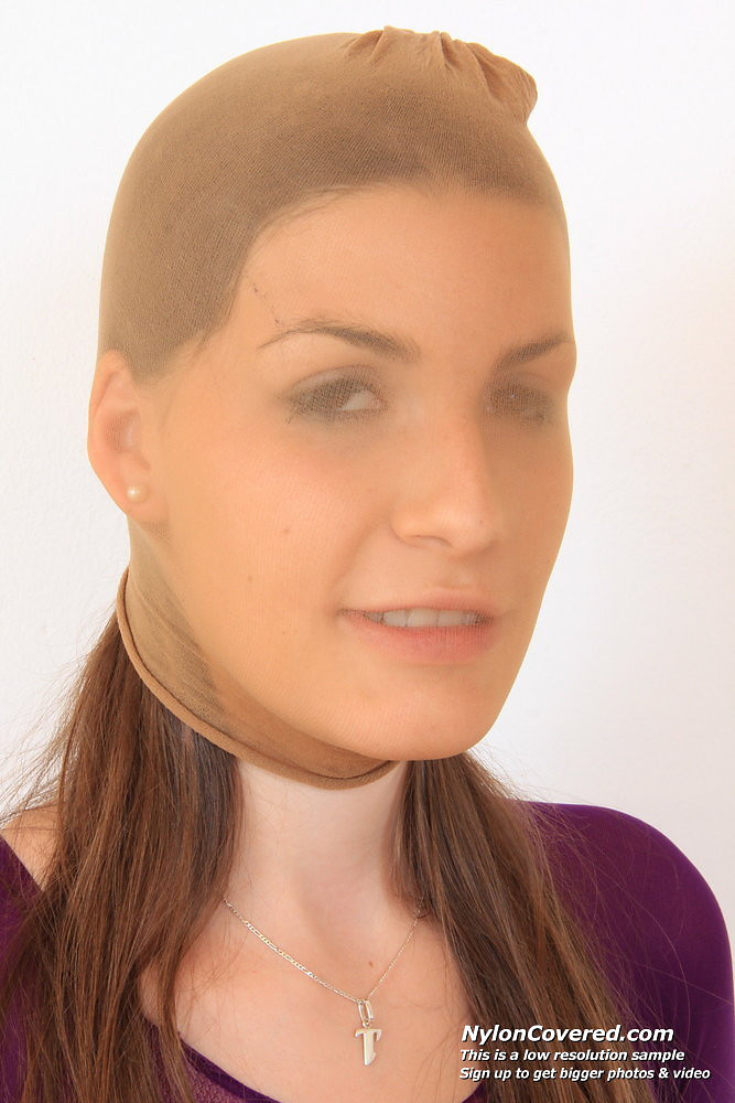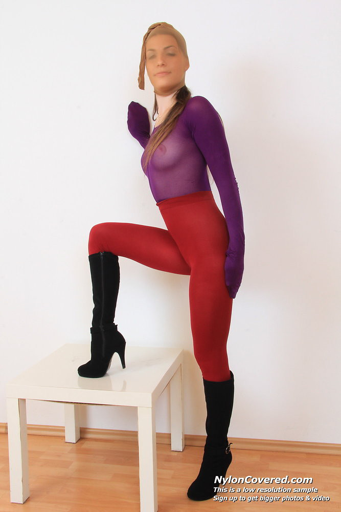 Nylon covered brunette Zena Little fucks her hole with a sex toy