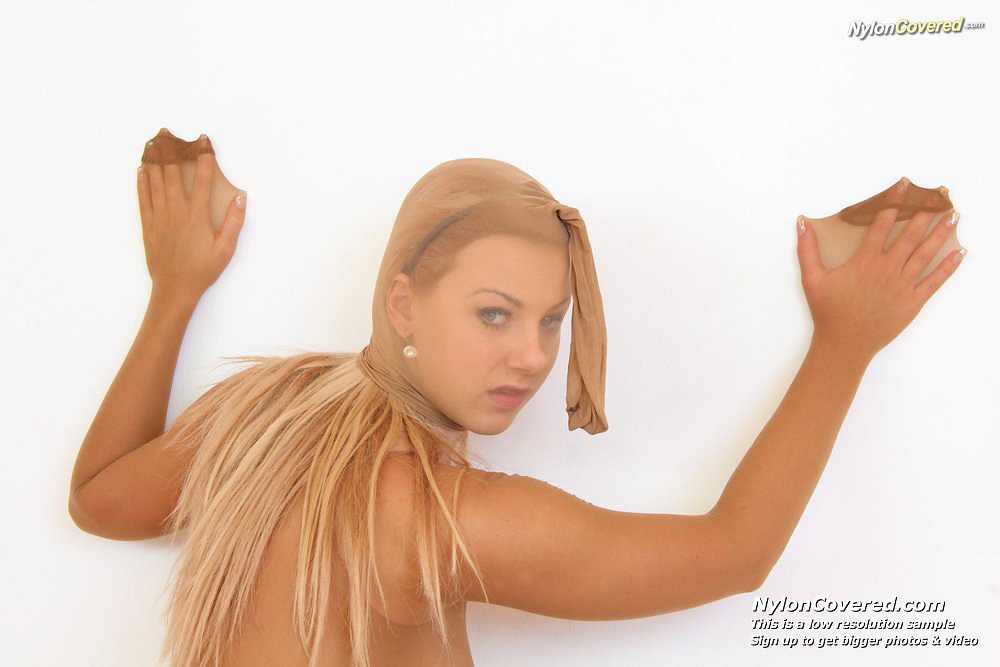 Huge juggs blond-haired got nylon tits and nylon mask on her face