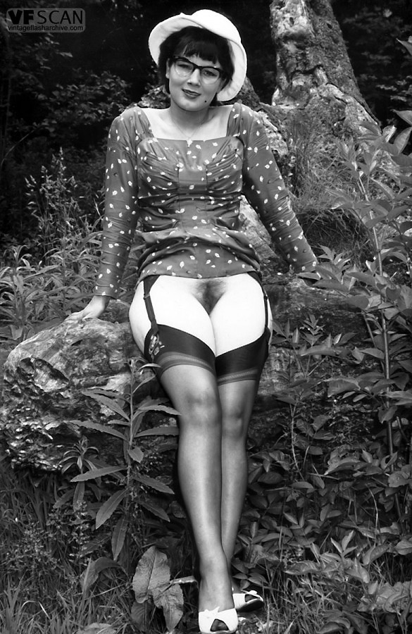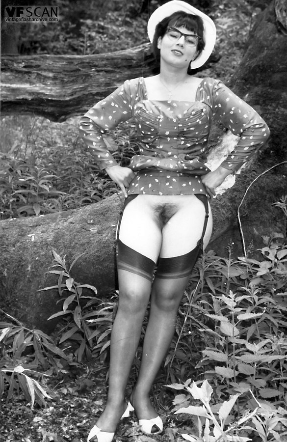 1960s nyloned brunettes strip in the woods!