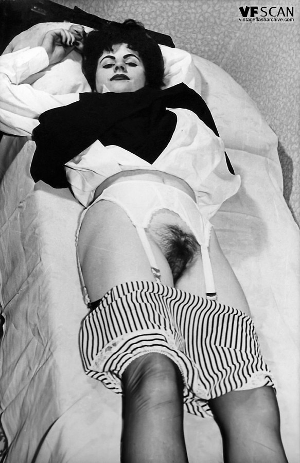 Vintage school student in black nylons strips!