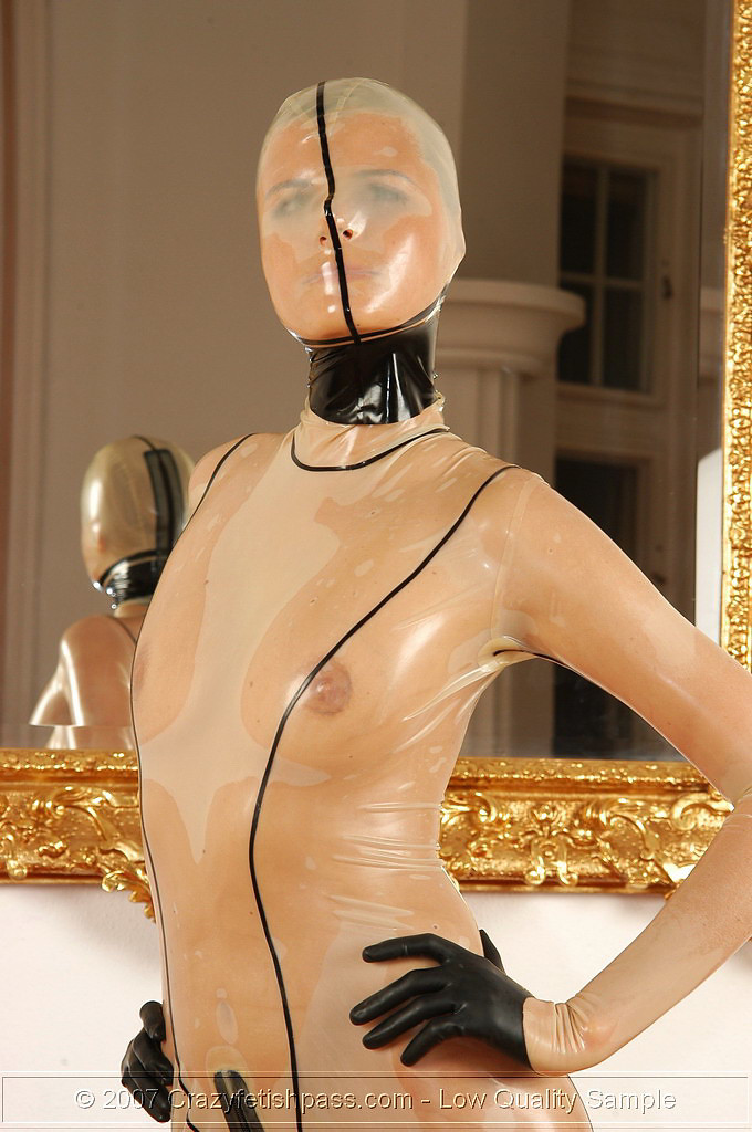 Sophies see thru latex suit getting wet