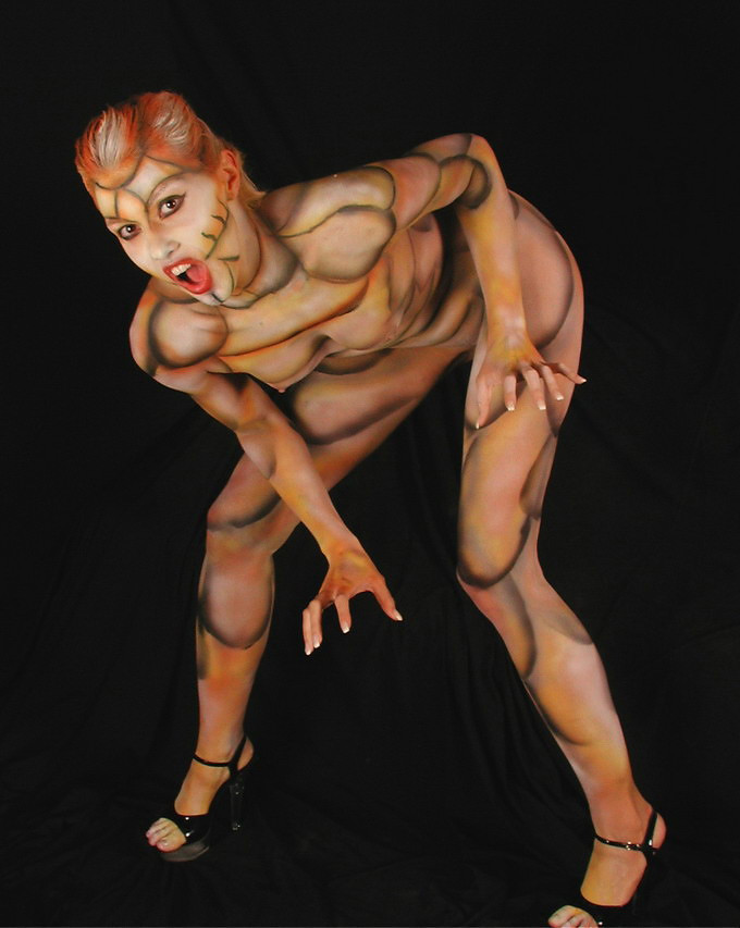 Jodis full body painted like a reptile