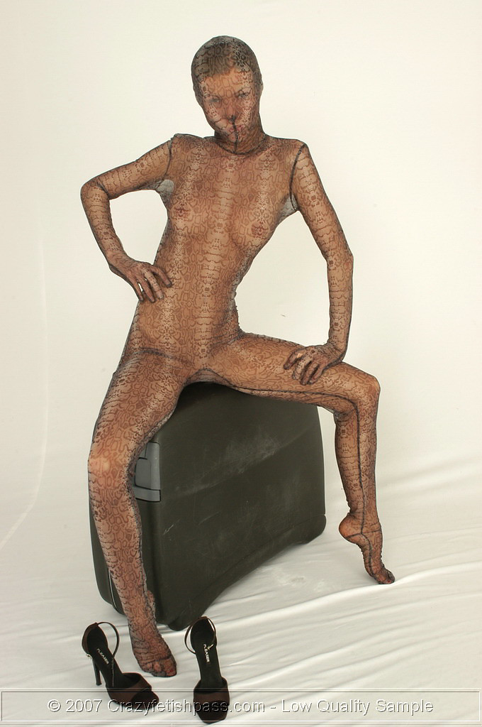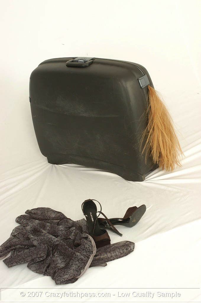 Hot spandex girl in a suitcase