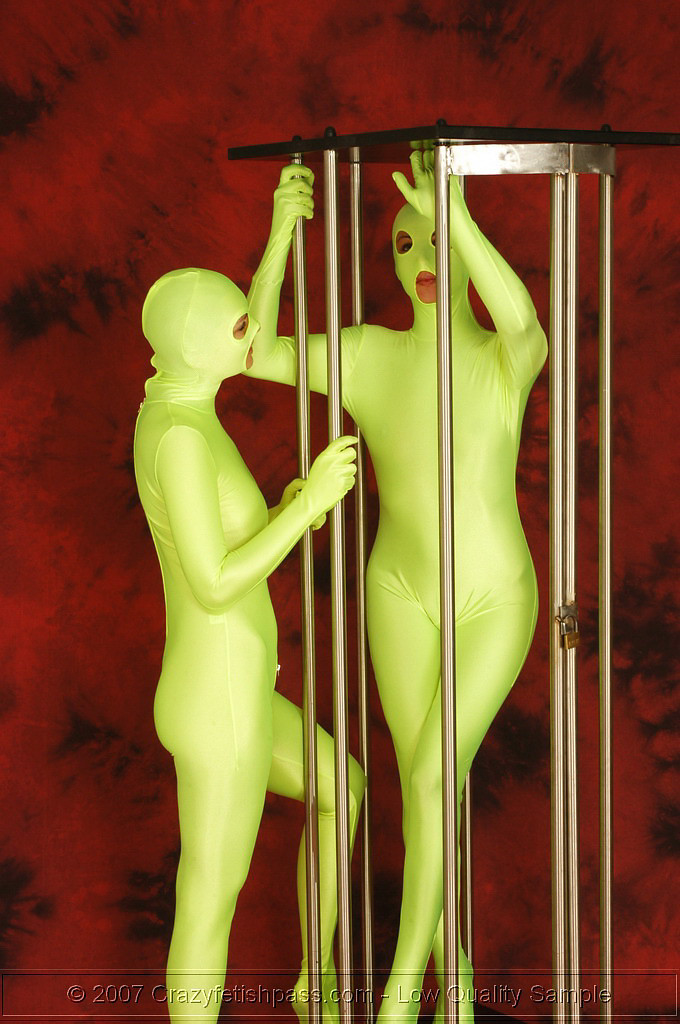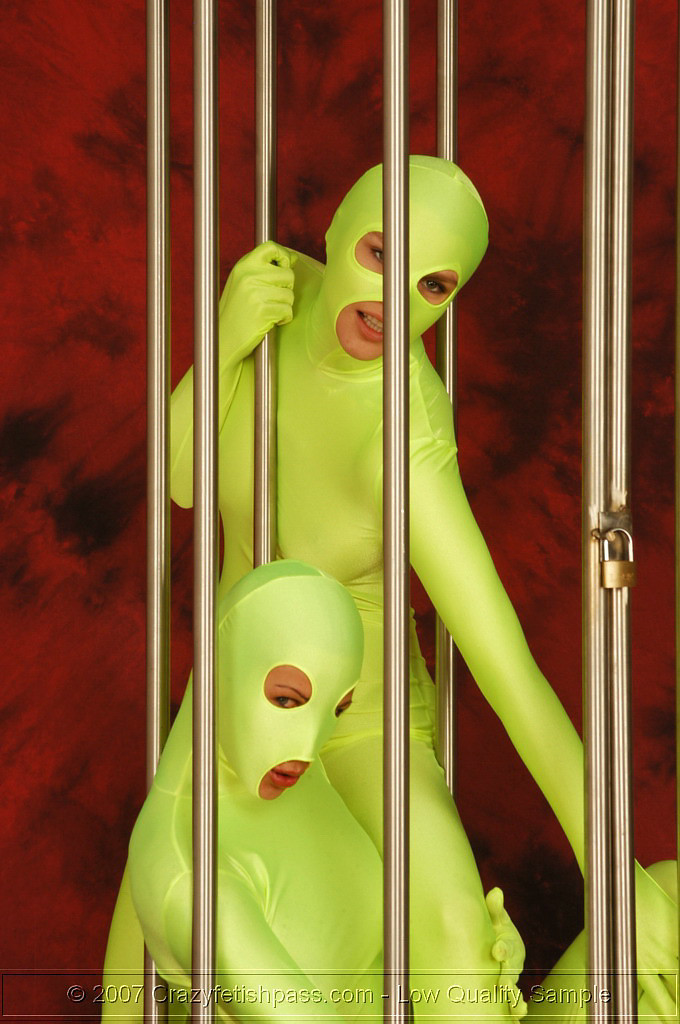 Lesbian spandex cuties and a cage