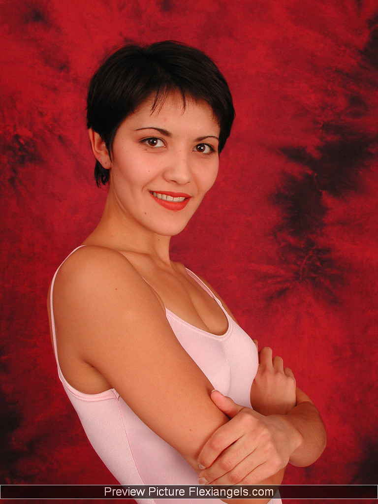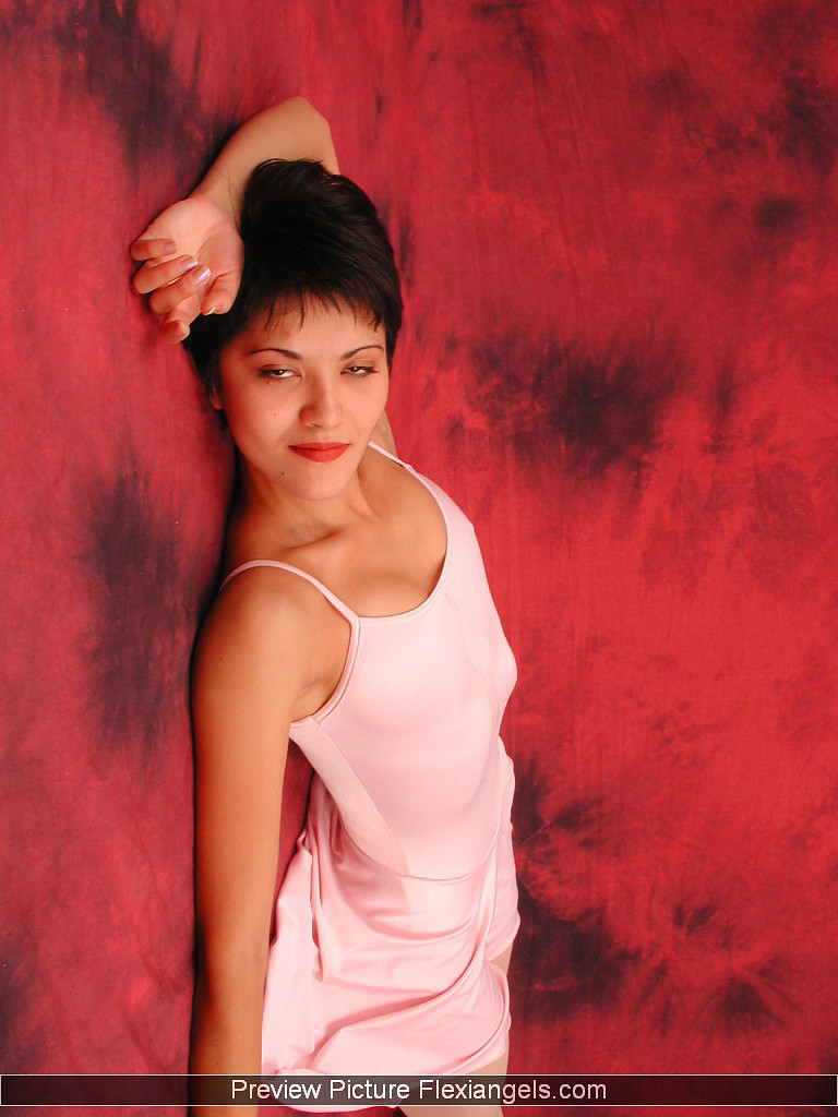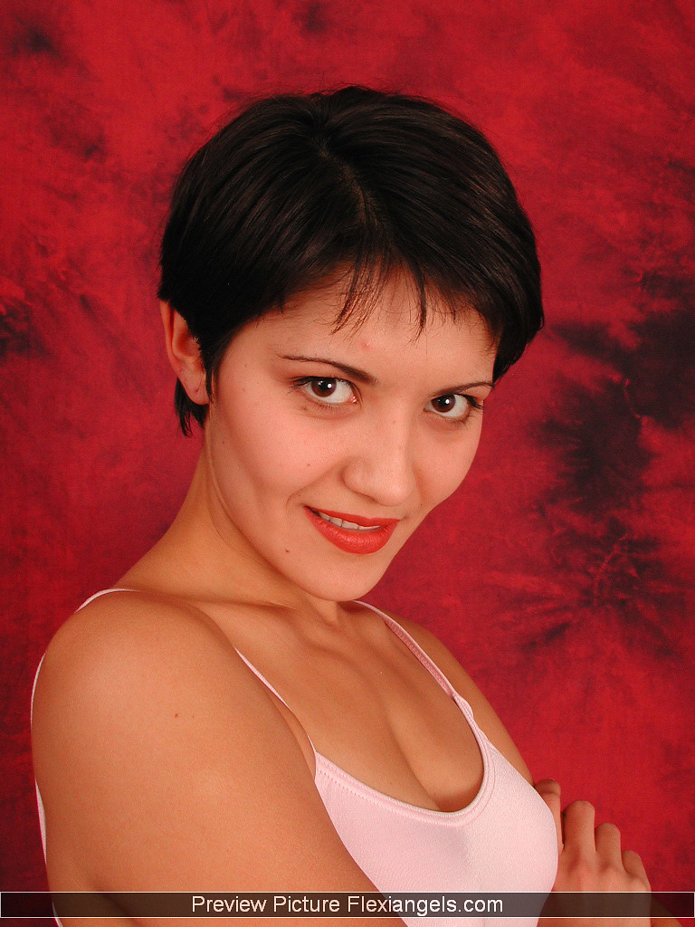 Adrianna in suntan sheer to the waist and a little striped skirt