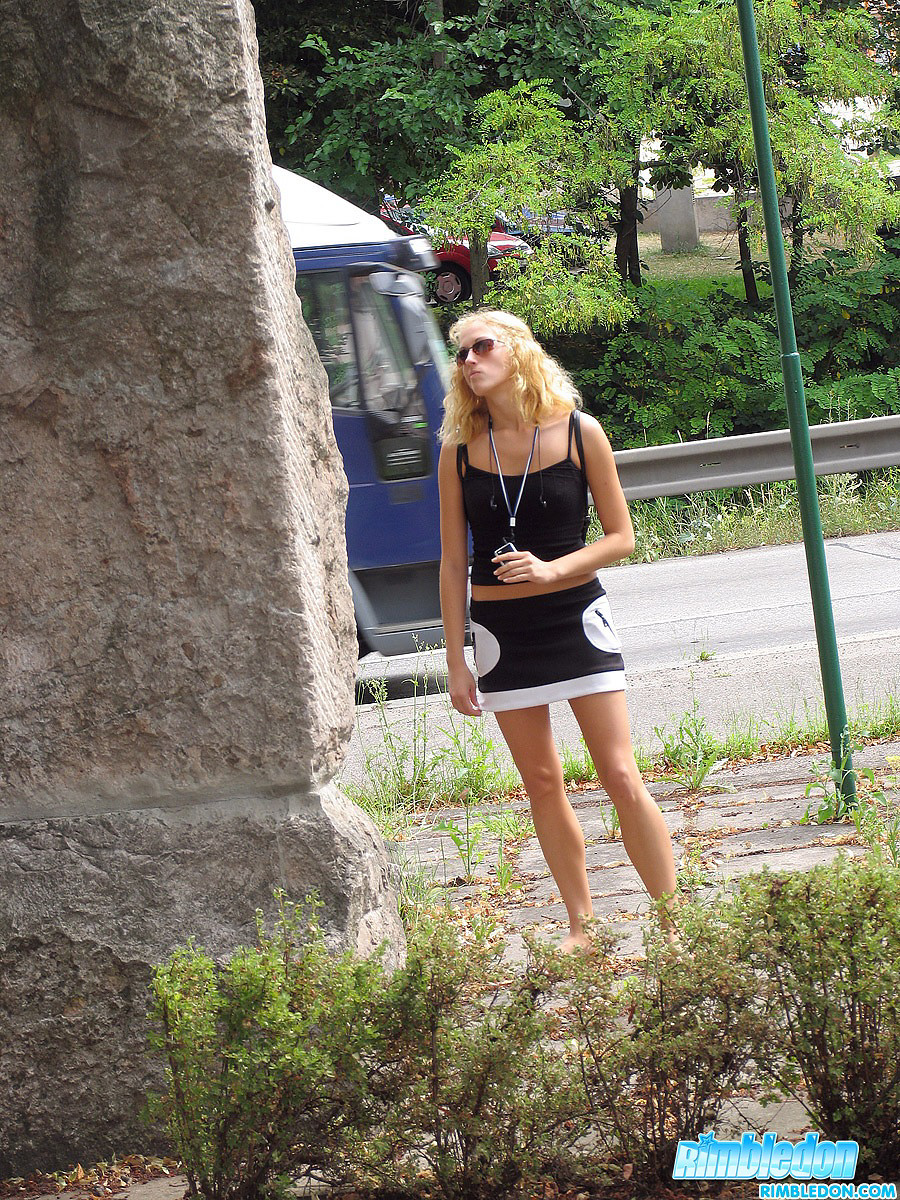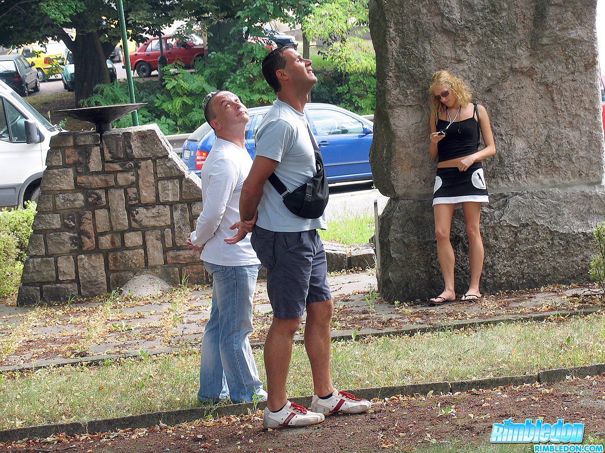 Cute blonde girl gets cash and a facial for a nasty rimjob