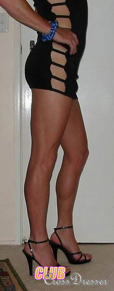 Horny crossdressing sluts wearing an array of black stockings and showing their hard cocks