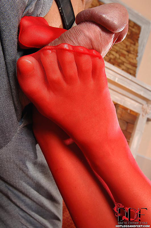 Kathia jerking a cock with her feet