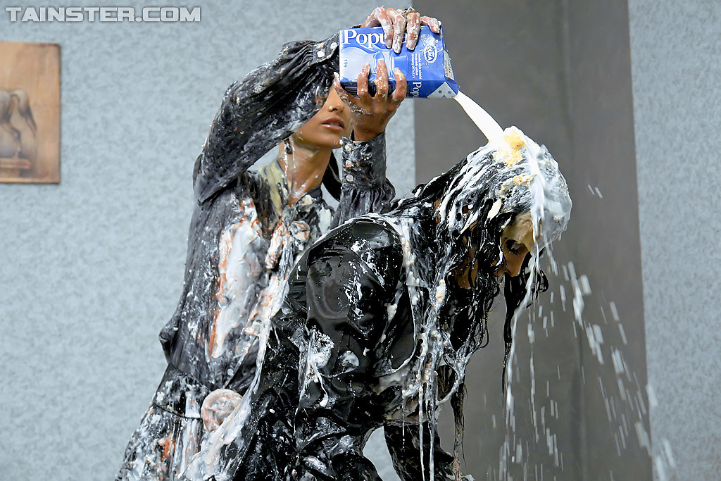 These lesbian-curious girls peel off their clothes and go on making out topless while enjoying the look of their elegant gartered stockings.